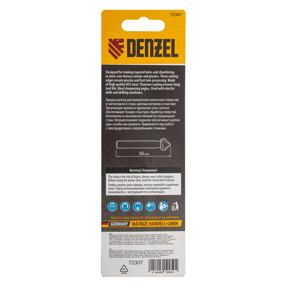 Зенковки Denzel применяются при работе с электродрелями и сверлильными станками для выполнения конических отверстий и снятия фасок в стали, цветных металлах и пластике. Преимущества:- Три режущие кромки и идеальные углы заточки обеспечивают точную и быструю обработку отверстий. - Монолитная конструкция из быстрорежущей стали гарантирует эфективную работу оснастки. - Нитридтитановое покрытие обеспечивает долгий срок службы за счет сниженного коэффициента трения.