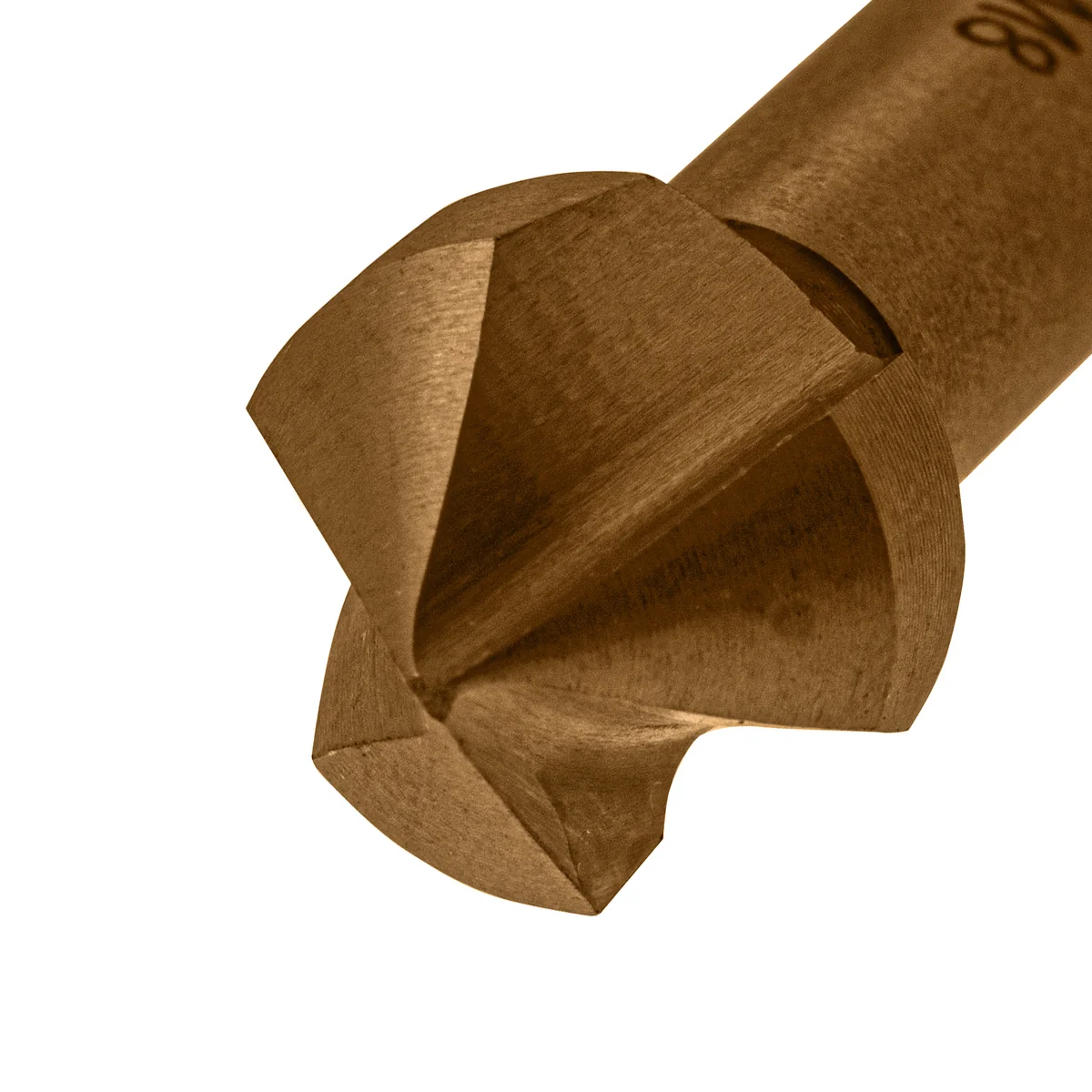 Зенковки Denzel применяются при работе с электродрелями и сверлильными станками для выполнения конических отверстий и снятия фасок в стали, цветных металлах и пластике. Преимущества:- Три режущие кромки и идеальные углы заточки обеспечивают точную и быструю обработку отверстий. - Монолитная конструкция из быстрорежущей стали гарантирует эфективную работу оснастки. - Нитридтитановое покрытие обеспечивает долгий срок службы за счет сниженного коэффициента трения.