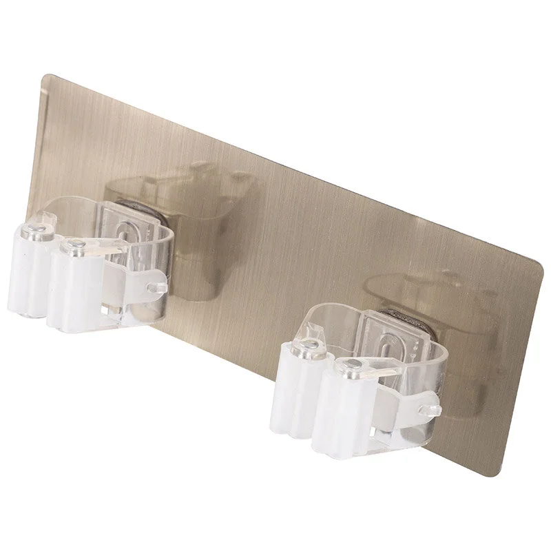 На самоклеящейся основе На 2 шт Размер: 20х7,5 см материал: ПВХ упаковка: пакет+хеддер Универсальный держатель позволяет размещать предметы любого типа: швабры, садовый инструмент, хозяйственные мелочи, кухонную утварь. Для установки держателя не требуются дополнительные крепления или присоски: клеевой слой обеспечит прочное крепление к поверхности.