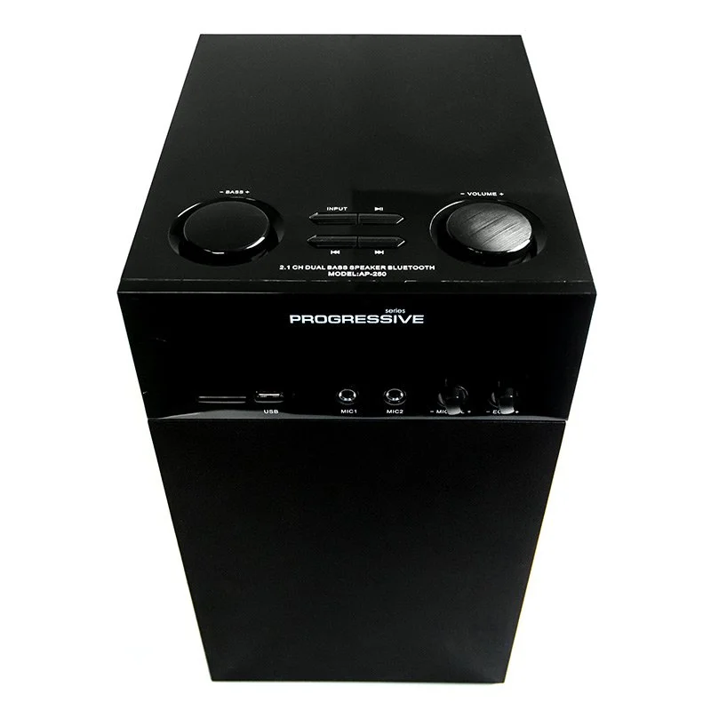 сабвуфер: регулятор громкости, регулятор низких частот, питание, выбор источника сигнала, пауза/воспроизведение, вперед/назад (по трекам/радиостанциям), громкость караоке микрофонов, эхо караоке микрофонов; пульт ДУ: подробно в руководстве пользователя |