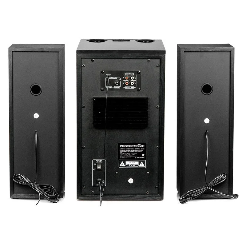 сабвуфер, два сателлита со встроенными кабелями для подключения к сабвуферу, кабель для подключения сабвуфера к источнику сигнала 2RCA->3.5 мм стерео джек, беспроводной пульт ДУ, батарейки ААА для пульта ДУ 2 шт, руководство пользователя с гарантийным талоном, упаковка |