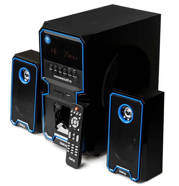 Dialog Progressive AP-222B - Активная трёхкомпонентная акустическая система со встроенным кардридером, поддержкой Bluetooth, USB портом, радиоприёмником FM диапазона и пультом дистанционного управления