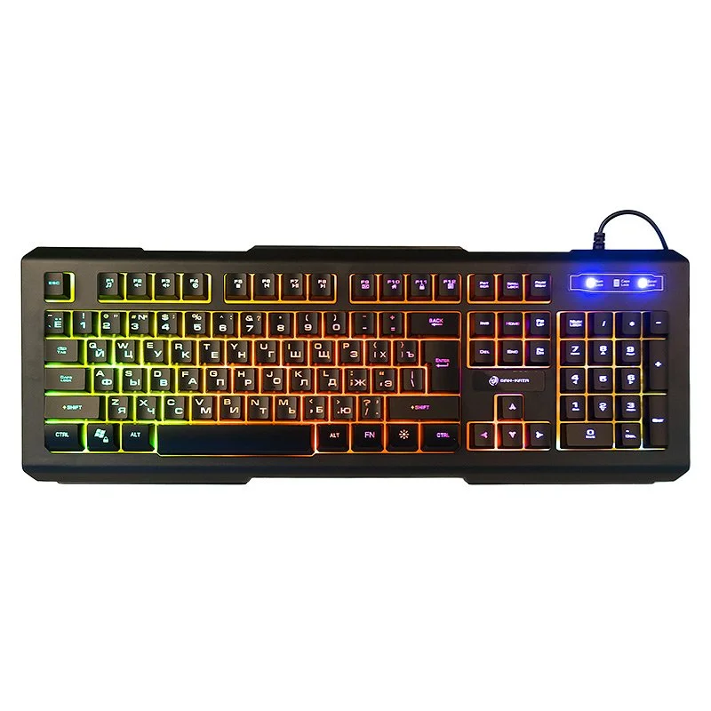 да. Сквозная радужная (многоцветная) подсветка, регулируемая яркость (три уровня яркости). Функция возрастающе-затухающей пульсирующей подсветки. |