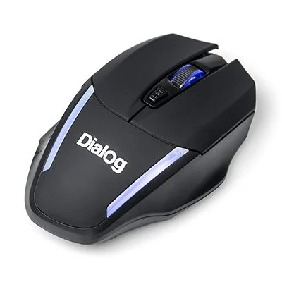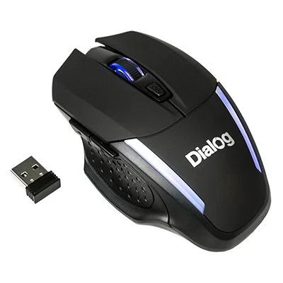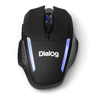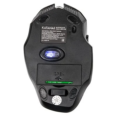 Голубая подсветка через полупрозрачные вставки на корпусе и колёсико прокрутки. Выключатель питания на нижней части корпуса. Отсек для хранения USB приёмника. |