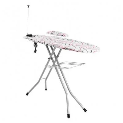 - комплектация: подставка для утюга, гладильный рукав, встроенная розетка для утюга, полка для белья, кронштейн для провода