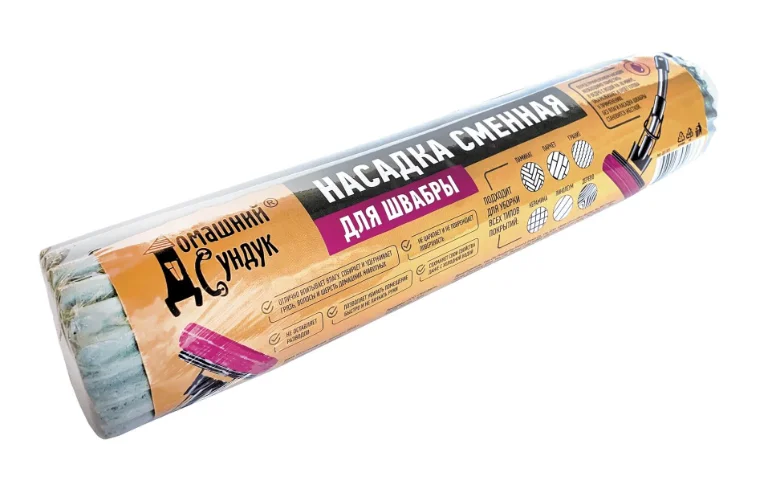 Надежно крепится к швабре, за счет чего не отвалится во время использования.
