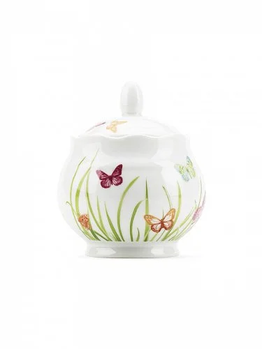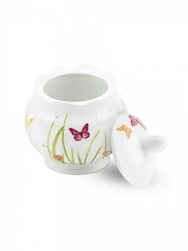 Стильная фарфоровая сахарница с легким и нежным дизайном с бабочками украсит любой стол от уютного чаепития до настоящего праздника. Сахарница продается в красивой подарочной упаковке.
