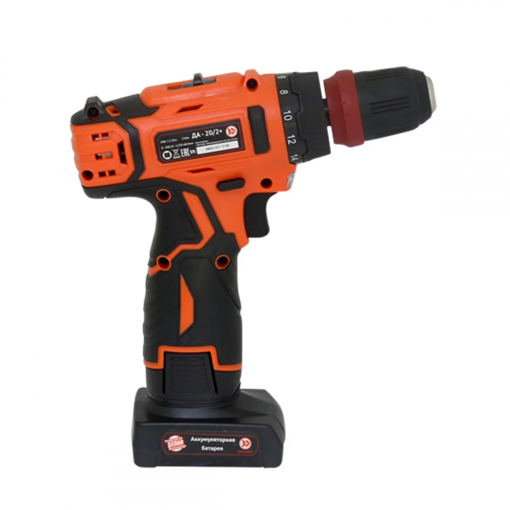 Ручная аккумуляторная дрель Калибр ДА-20/2+ предназначена для сверления отверстий в цветных и чёрных металлах, пластмассах, дереве ДСП и откручивания/закручивания различного вида крепежа. Дрель имеет функции: два диапазона скорости, изменение направления вращения (реверс), ступенчатое изменение предельного момента затяжки и плавное изменение скорости вращения шпинделя. Это позволяет эффективно использовать дрель в качестве шуруповёрта. Инструмент предназначен для бытового применения. Установленный в дрели коллекторный электродвигатель постоянного тока с двойной изоляцией обеспечивает максимальную электробезопасность при работе. Модель комплектуется быстрозажимным, быстросъёмным патроном, крепящемся на шпиндель подпружиненной муфтой со стальными шариками. Шпиндель имеет внутренний, 6-ти гранный, стандартный (1/4’’) держатель бит с магнитом. Такая конструкция позволяет быстро переходить от одного вида работы к другому (сверление - работа с крепежом), а также упрощает замену бит в держателе шпинделя. Рабочим инструментом дрели являются свёрла по металлу или дереву и разнообразные биты для работы с крепежом.