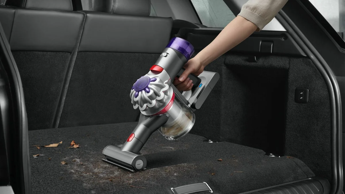 Возможно, имелся в виду вертикальный пылесос Dyson SV25 V8 Absolute оранжевого или серебристого цвета.