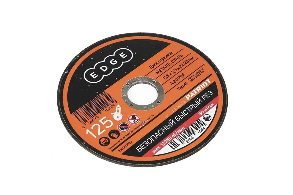 - диск отрезной EDGE by PATRIOT 816010002 предназначен для резки изделий из металла и стали, применяется с угловыми шлифмашинами с рабочим диаметром до 125 мм.