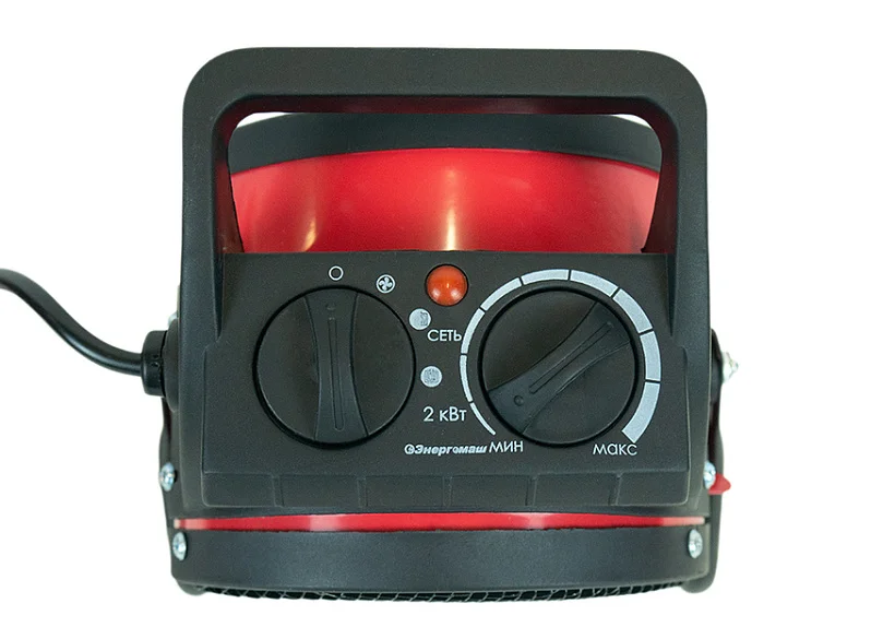 Керамический обогреватель Энергомаш ТП-2000МК. Керамический нагревательный элемент обеспечивает высокую эффективность тепловентилятора. За счет большой площади нагревательного элемента вентилятор разгоняет максимально возможное количество нагретого воздуха в единицу времени, что обеспечивает высокую интенсивность нагрева помещений. Компактные размеры тепловентиляторов серии МК при сохранении показателей эффективности нагрева. Три режима работы: вентилятор / теплый / горячий позволяют использовать тепловентилятор как для обогрева разной интенсивности в холодное время года, так и для вентиляции летом. Регулируемый термостат позволяет устанавливать уровень нагрева внутри режимов. Встроенная термозащита автоматически остановит тепловентилятор при достижении критической температуры. При этом вентилятор прибора продолжит работу предохраняя внутренние части от перегрева. Автоматическое включение произойдет при остывании до рабочей температуры.