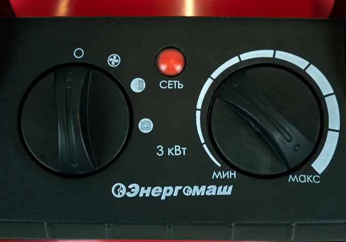 Керамический обогреватель Энергомаш ТП-3000МК. Керамический нагревательный элемент обеспечивает высокую эффективность тепловентилятора. За счет большой площади нагревательного элемента вентилятор разгоняет максимально возможное количество нагретого воздуха в единицу времени, что обеспечивает высокую интенсивность нагрева помещений. Компактные размеры тепловентиляторов серии МК при сохранении показателей эффективности нагрева. Три режима работы: вентилятор / теплый / горячий позволяют использовать тепловентилятор как для обогрева разной интенсивности в холодное время года, так и для вентиляции летом. Регулируемый термостат позволяет устанавливать уровень нагрева внутри режимов. Встроенная термозащита автоматически остановит тепловентилятор при достижении критической температуры. При этом вентилятор прибора продолжит работу предохраняя внутренние части от перегрева. Автоматическое включение произойдет при остывании до рабочей температуры.