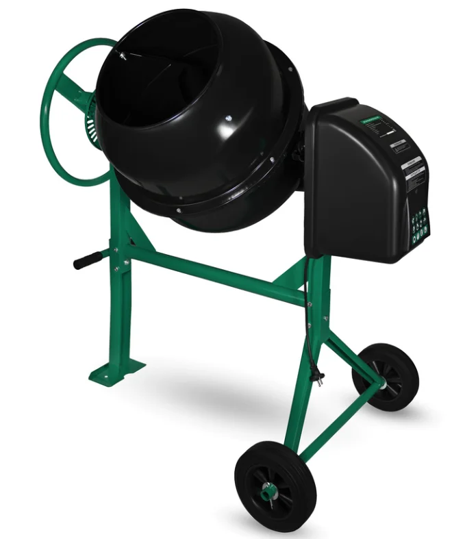 Бетоносмеситель 165 литров Electrolite предназначена для подключения к однофазной бытовой сети электропитания, которая обеспечивает работу синхронного двигателя с медной обмоткой. Номинальная мощность электромотора – 800 Вт. Он способен обеспечивать 1400 об/мин, которые передаются на барабан посредством зубчатой передачи с высоким передаточным соотношением. Число зубьев в зацеплении обеспечивают от 24 до 29 оборотов емкости со смесью в минуту.