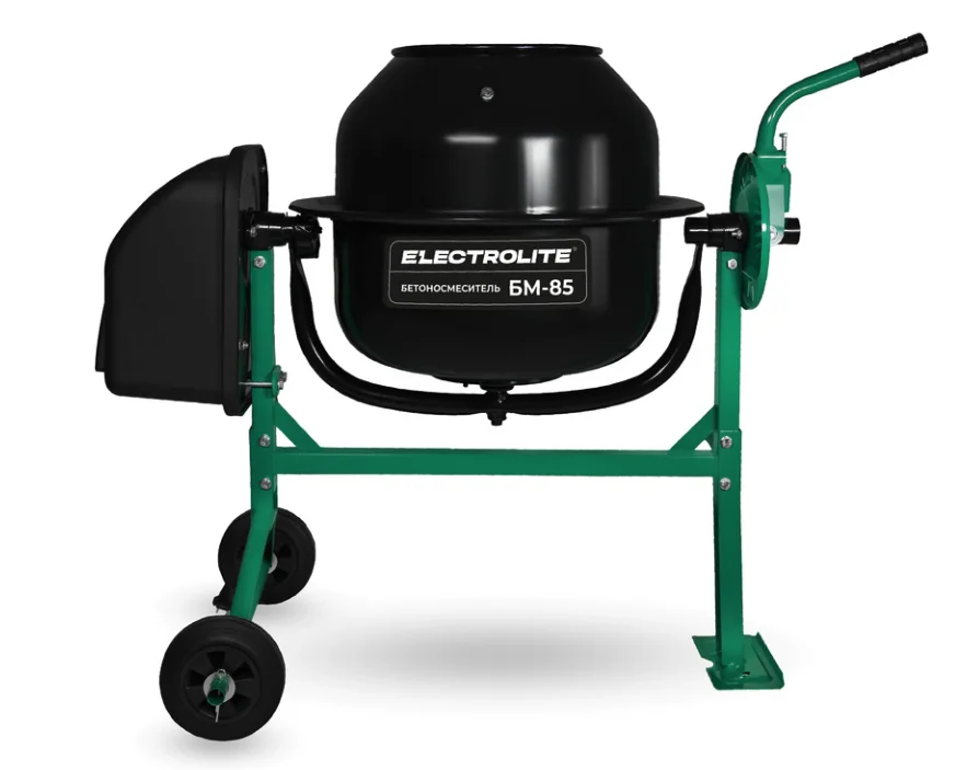 Бетоносмеситель ELECTROLITE БМ-85(объем 85/65 л, мощность 450Вт, сеть 220В/50Гц, вес 27кг, венец стальной)