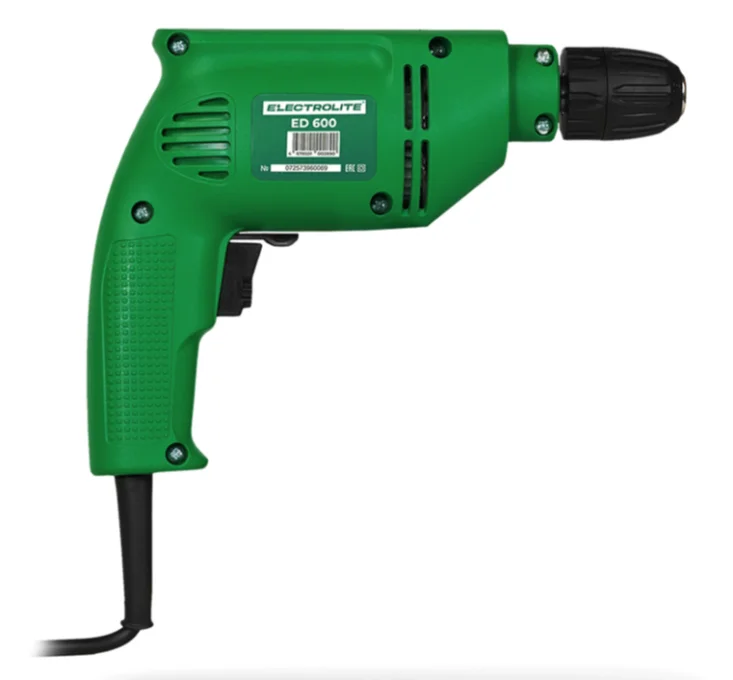 Дрель электрическая Electrolite ED 600 используется для сверления отверстий в дереве и металле. Эта дрель, оснащенная качественным механизмом, станет вашим незаменимым помощником в самых разных задачах. Мощный и надежный двигатель ED 600 мощностью 600 Вт создан с использованием качественных комплектующих, что гарантирует его повышенный ресурс и долгий срок службы. Дрель ударная имеет электронную регулировку оборотов, для комфортной настройки, при работе с различными материалами (дерево, металл, пластик, бетон). А быстрозажимной патрон до 10 мм обеспечит надежную фиксацию сверл и других насадок, делая процесс работы максимально удобным и эффективным.