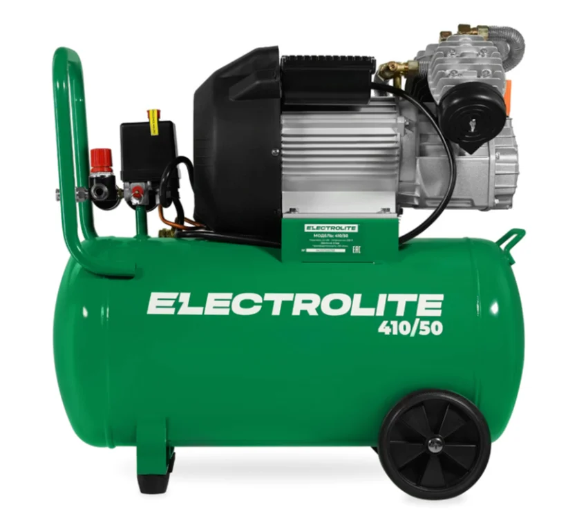 Компрессор ELECTROLITE 410/50 (410л/мин, 2,2кВт, 3л.с., 220В, 8 атм, ресивер 50л, ф поршня 47мм*2)