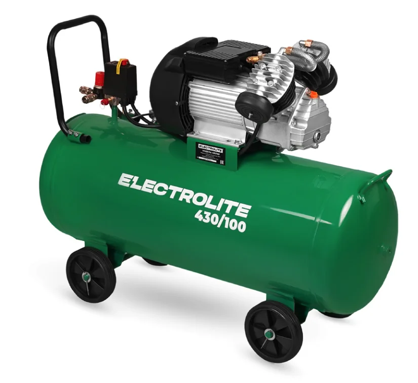 Компрессор 430/100 Electrolite рассчитан на эксплуатацию в бытовых и полупрофессиональных условиях. Масляный компрессор предназначен для подачи сжатого воздуха в различных отраслях промышленности. Прочные колеса обеспечивают удобное передвижение пневмокомпрессора по рабочей площадке. Пневматический компрессор оснащен манометрами для измерения давления в ресивере, а также рабочего давления, что позволяет контролировать весь рабочий процесс. Данный компрессор отлично подойдет для использовании в различных сферах (гараж, ремонтная мастерская, покраска автомобилей, продувка сельскохозяйственной техники и т.д.). Поршневой компрессор электрический имеет высокую производительность 430 л/мин (25.8 м3/ч), что делает его универсальным.