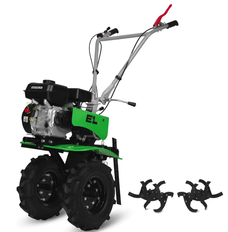Мотоблок бензиновый ELECTROLITE МБ5-703 — тяжёлый агрегат мощностью 7 л.с., созданный для механизации сельскохозяйственных работ на приусадебных участках, в коллективных садах и личных подсобных хозяйствах. Эта машина справляется там, где лёгкие культиваторы бессильны: вспашка целины, разбивка плотных комков, подготовка грядок к посеву. Инструмент такого класса механизирует большую часть ручного труда за один сезон.