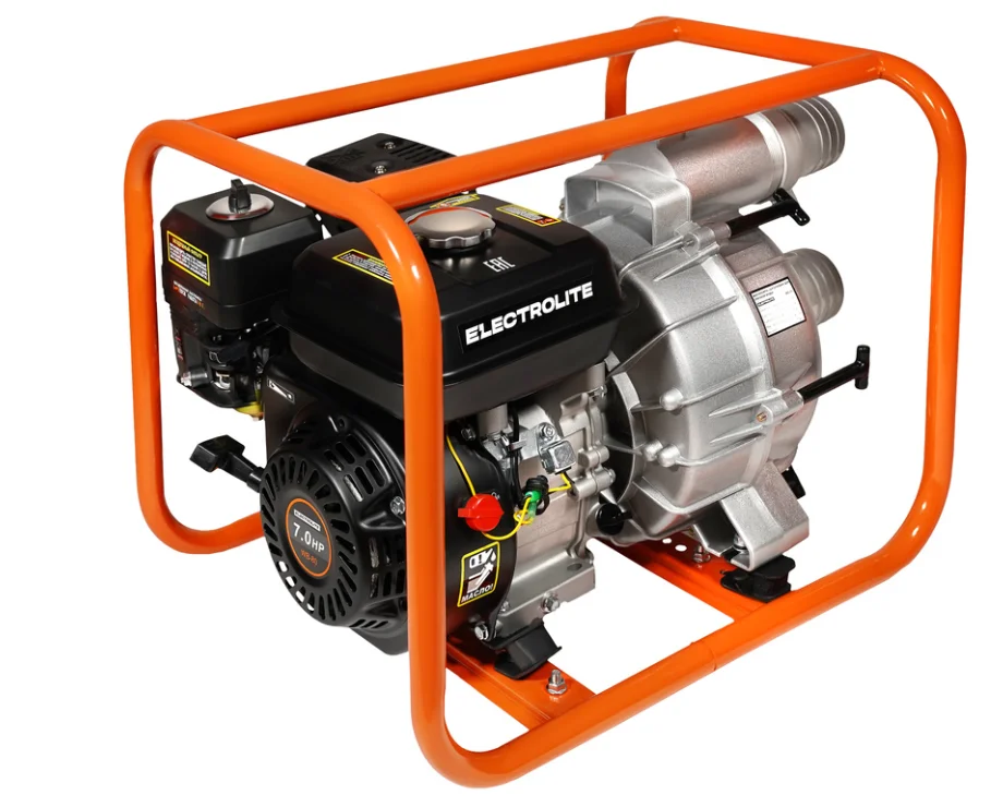 Мотопомпа ELECTROLITE WВ-80 (для грязной воды, двигатель 7л.с., 80мм, 1300л/мин, глубина всасывания 8м., макс. напор 30м., вес 32кг.) )