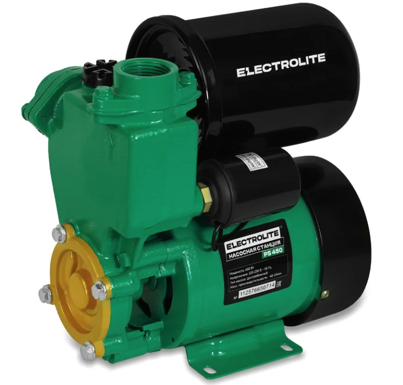 Насосная станция ELECTROLITE PS 450 (230В, 450Вт, напор 40м, 40л/мин, макс.глуб.всасыв.9м, корпус чугун)