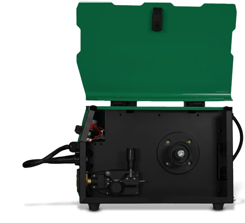 - Боковая панель с надежными креплениями откидывается для удобного доступа к катушке с проволокой;