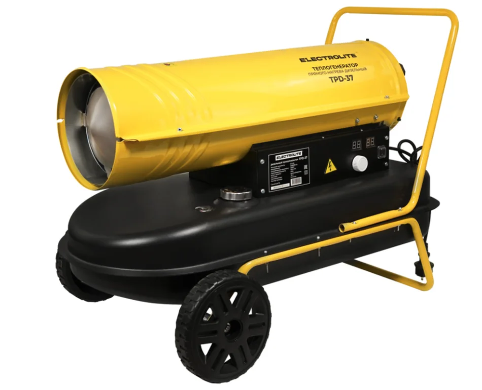 Дизельная тепловая пушка ELECTROLITE TPD-37 (37 кВт) предназначена для обогрева помещений большой площади (промышленных ангаров, складов, гаражей, торговых залов). Данная пушка обеспечивает прямой нагрев.