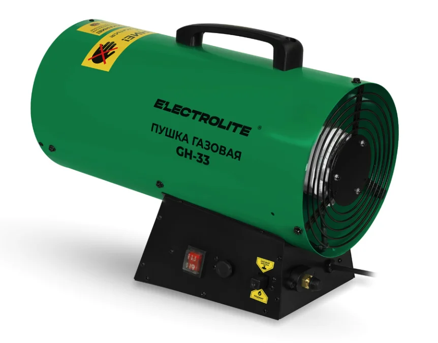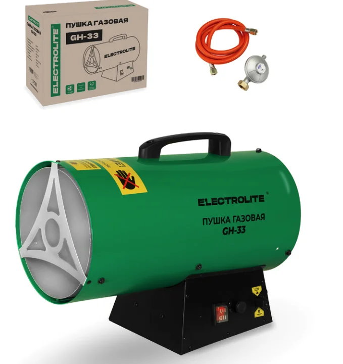 Пушка газовая ELECTROLITE GH 33 (220Ы, 33кВт, обогрев 900кв.м, 1000 куб.м/ч, расх.топл. 4л/ч)