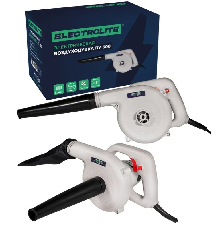 Воздуходувное устр. ELECTROLITE ВУ 300 (600 Вт, скорость холостого хода 0-13000 об/мин, расход воздуха 3 м3/мин, с мешком)