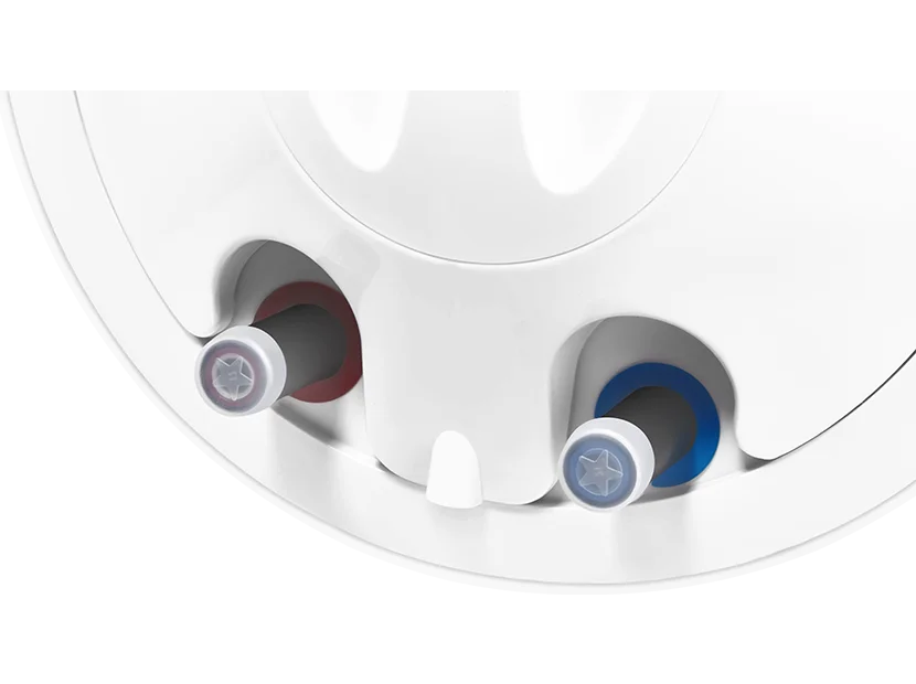 На нижней крышке водонагревателя расположена удобная и интуитивно понятная панель управления. На ней размещены ручка включения прибора, с помощью которой можно задать нужную температуру нагрева воды в диапазоне от 30 до 75°С. Используя функцию экономного режима (положение «ЕCO»), вода будет нагревается до температуры 55°С. При этой температуре, образование накипи сводится к минимуму и позволяет снизить расход электроэнергии.