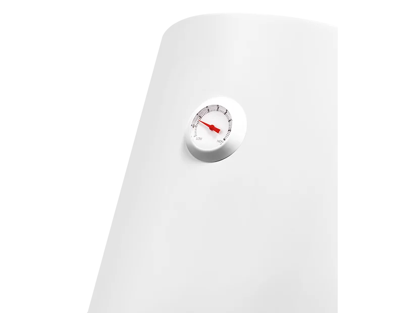 На нижней крышке водонагревателя расположена удобная и интуитивно понятная панель управления. На ней размещены ручка включения прибора, с помощью которой можно задать нужную температуру нагрева воды в диапазоне от 30 до 75°С. Используя функцию экономного режима (положение «ЕCO»), вода будет нагревается до температуры 55°С. При этой температуре, образование накипи сводится к минимуму и позволяет снизить расход электроэнергии.