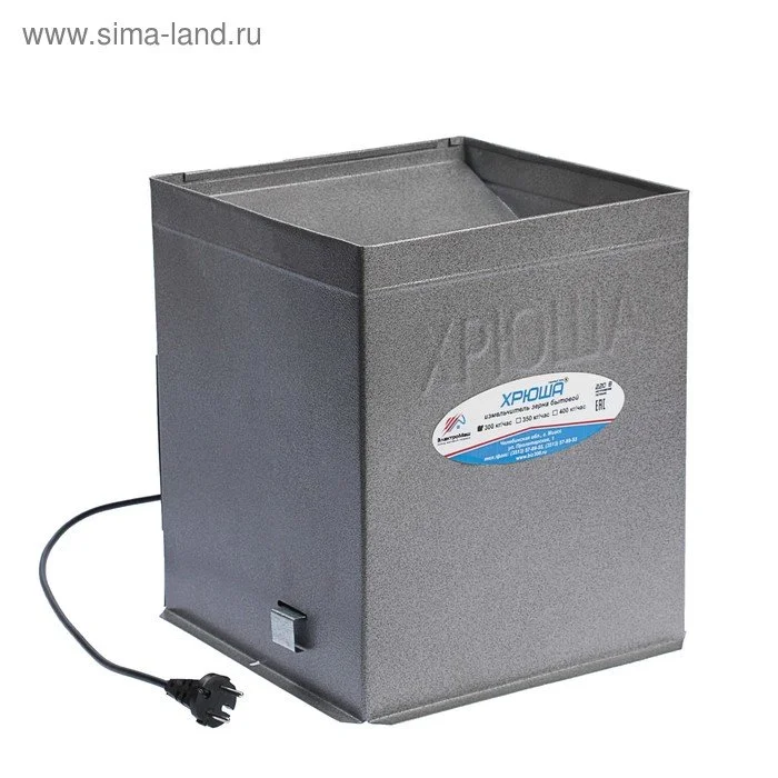 Для ее использования требуется дополнительная емкость, например, бак, короб или просто ведро. Работает зернодробилка от эклектической сети.