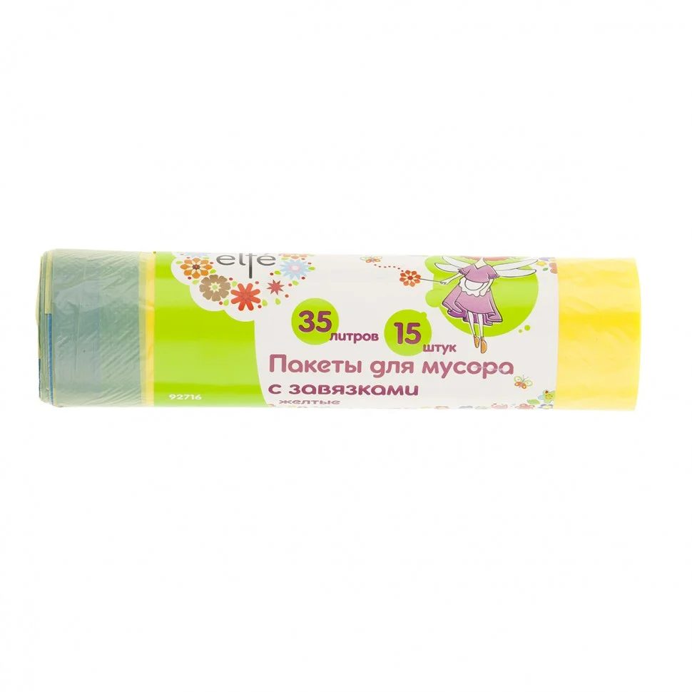 Пакеты для мусора с завязками 35 л х 15 шт, желтые, Россия Elfe 92716
