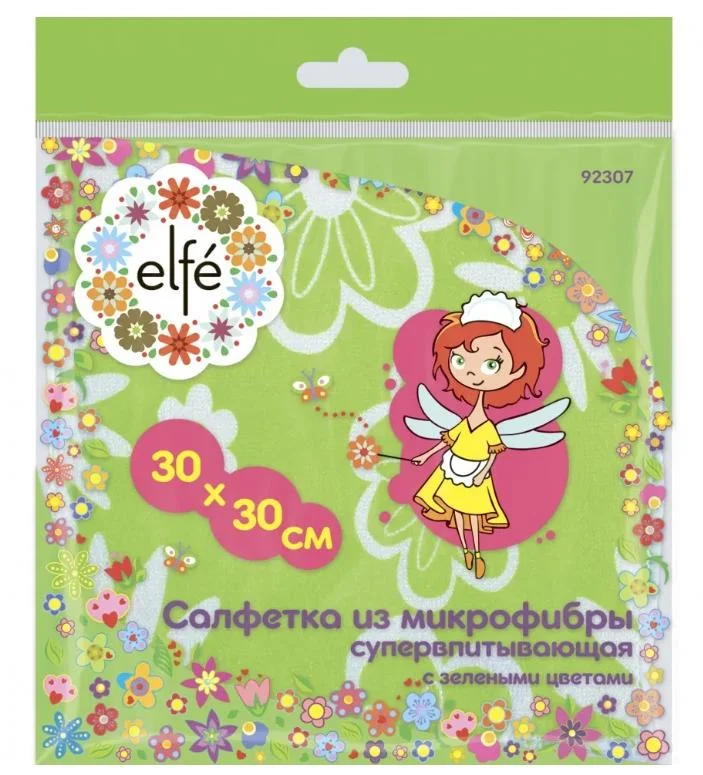 Салфетки из микрофибры Elfe 92307 размером 300 х 300 мм, с зелеными цветами, значительно облегчают наведение порядка в помещениях. За счет мягкой структуры они не царапают поверхность, поэтому подходят для очищения любых покрытий.