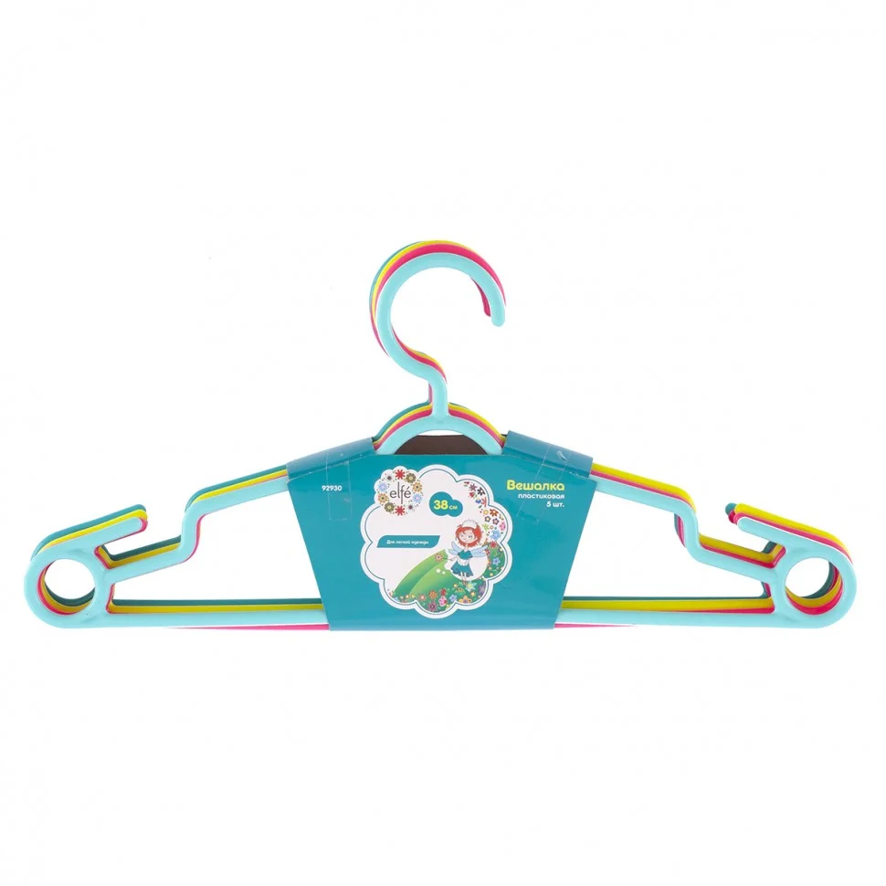 Комплект Elfe 92930 из 5 цветных пластиковых вешалок длиной 38 см каждая предназначен для хранения легкой одежды. Позволяет поддерживать вещи в идеальном состоянии без необходимости отглаживания. Поверхность вешалок предотвращает повреждение одежды из шелка и других деликатных тканей.ПреимуществаНадежность — изделия из высококачественного полипропилена устойчивы к деформации.Универсальность — специальные крючки позволяют подвешивать юбки или платья.Прочные перекладины — на вешалках можно размещать легкие брюки.Удобное хранение аксессуаров — по бокам вешалок имеются кольца для ремней, галстуков, шарфов или платков.5 штук в наборе — вешалок хватит на несколько комплектов одежды.