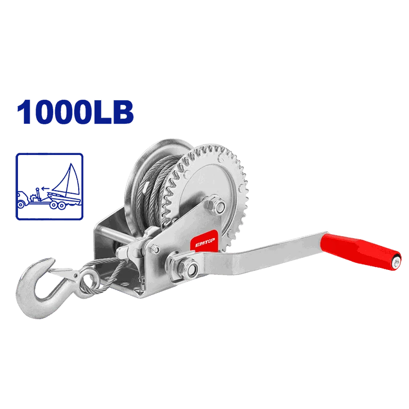 Диаметр троса: 4,8 мм Передаточное отношение: 4,1:1 Крюк из кованой среднеуглеродистой стали Нескользящая нейлоновая ручка Размер монтажной пластины: ширина 9 см х длина 13,7 см с отверстиями для крепежных винтов Обработка поверхности: оцинковка. Для буксировки лодок, прицепов, грузовиков и сельскохозяйственной техники