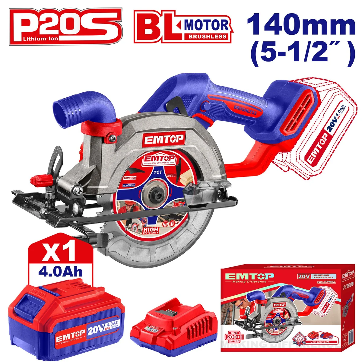ELCS14021 — аккумуляторная циркулярная пила от производителя EMTOP. Предназначена для профессионалов и любителей, работающих с древесиной и другими материалами.