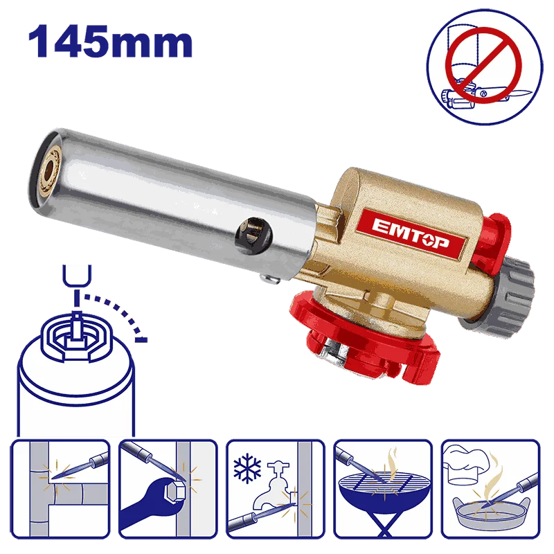 Размер: 145 * 50 * 40 мм Вес: 182 г Материал: сплав алюминий + цинк Температура пламени: 1300 ° (можно регулировать) Тип подключения: байонетное. Способ розжига: автоматический пьезоэлектрический. Прочный металлический корпус, замена газа занимает всего 2 секунды Подходит для домашнего хозяйства, ресторанов и многократного использования. Нельзя зажигать в перевернутом виде.