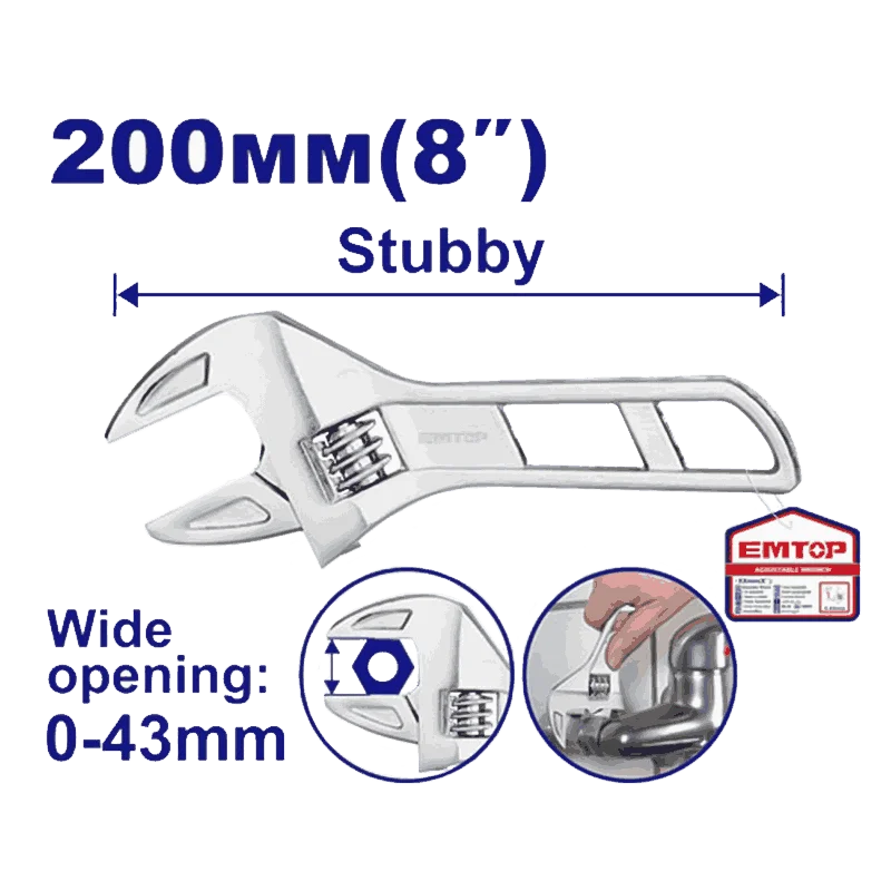 Ключи, Наборы ключей » Emtop Ключ разводной EМАW7108 Ключ разводной EМАW7108 Производитель: EmtopРазмер: 200Тип: разводнойНаличие: Нет в наличииБонусы: 17 ₽ Код товара: 92648 нет в наличии Описание Длина: 200 мм (8"") Регулируемый размер зажима: 0-43 мм Ручка кованая в форме капли Термообработка Хромированное покрытие Упакована в картонную коробку Поделитесь ссылкой: