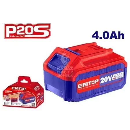 Напряжение: 20 В Литий-ионный аккумулятор емкостью 4,0 Ач Светодиодный индикатор заряда батареи Одна батарея подходит для всех инструментов P20S multiple Упакована в цветную коробку