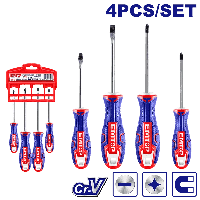Набор отверток из 4 предметов Ручка нового дизайна Материал: CRV Круглое лезвие 1 шт. SL5,5x100 мм 1 шт. SL6,5x150 мм