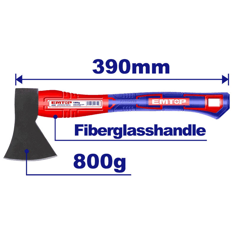 Вес: 800 г Головка топора кованая в форме капли Термообработка из углеродистой стали 45# Рукоятка из стекловолокна уникального дизайна
