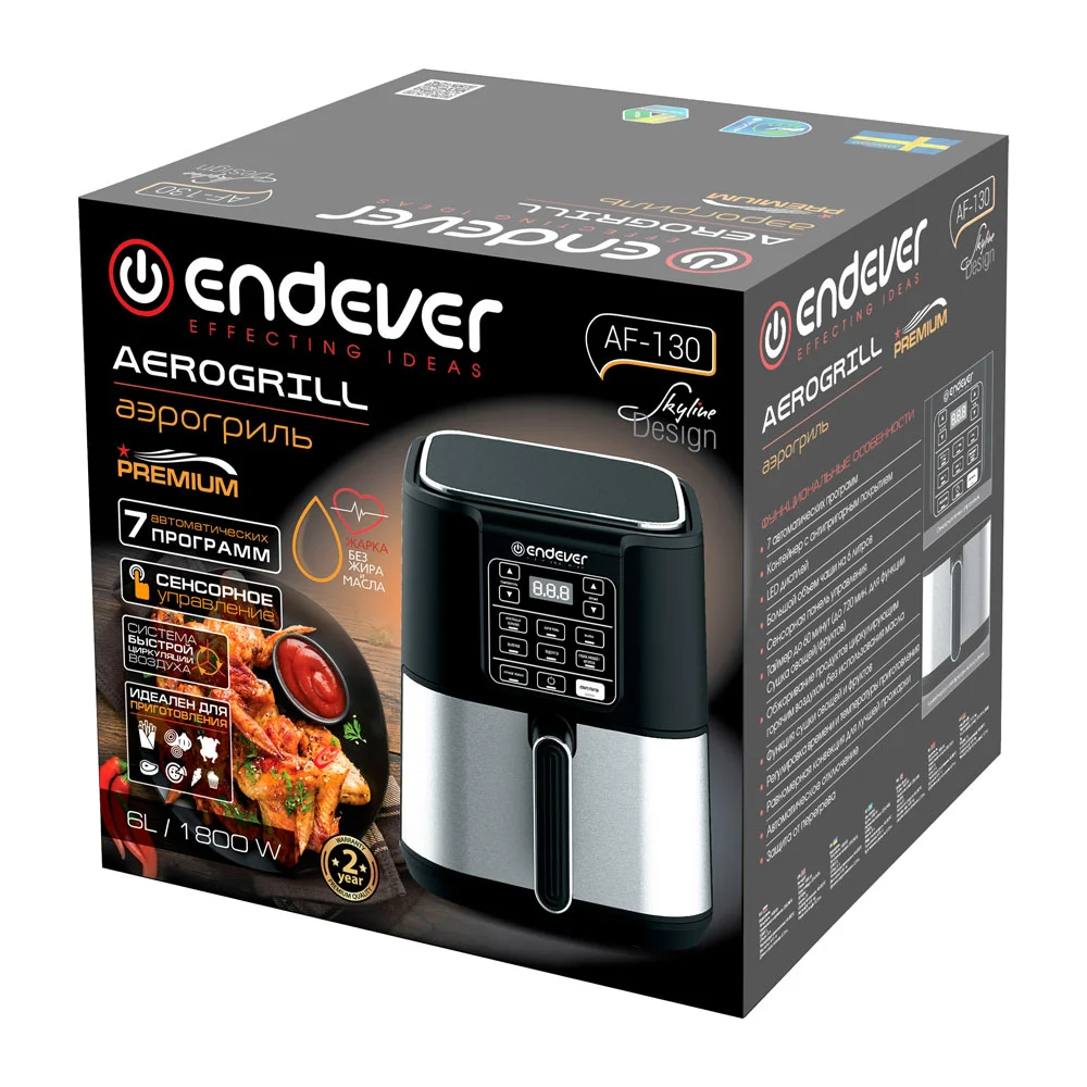 Аэрогриль Endever Skyline AF-130, черный/стальной