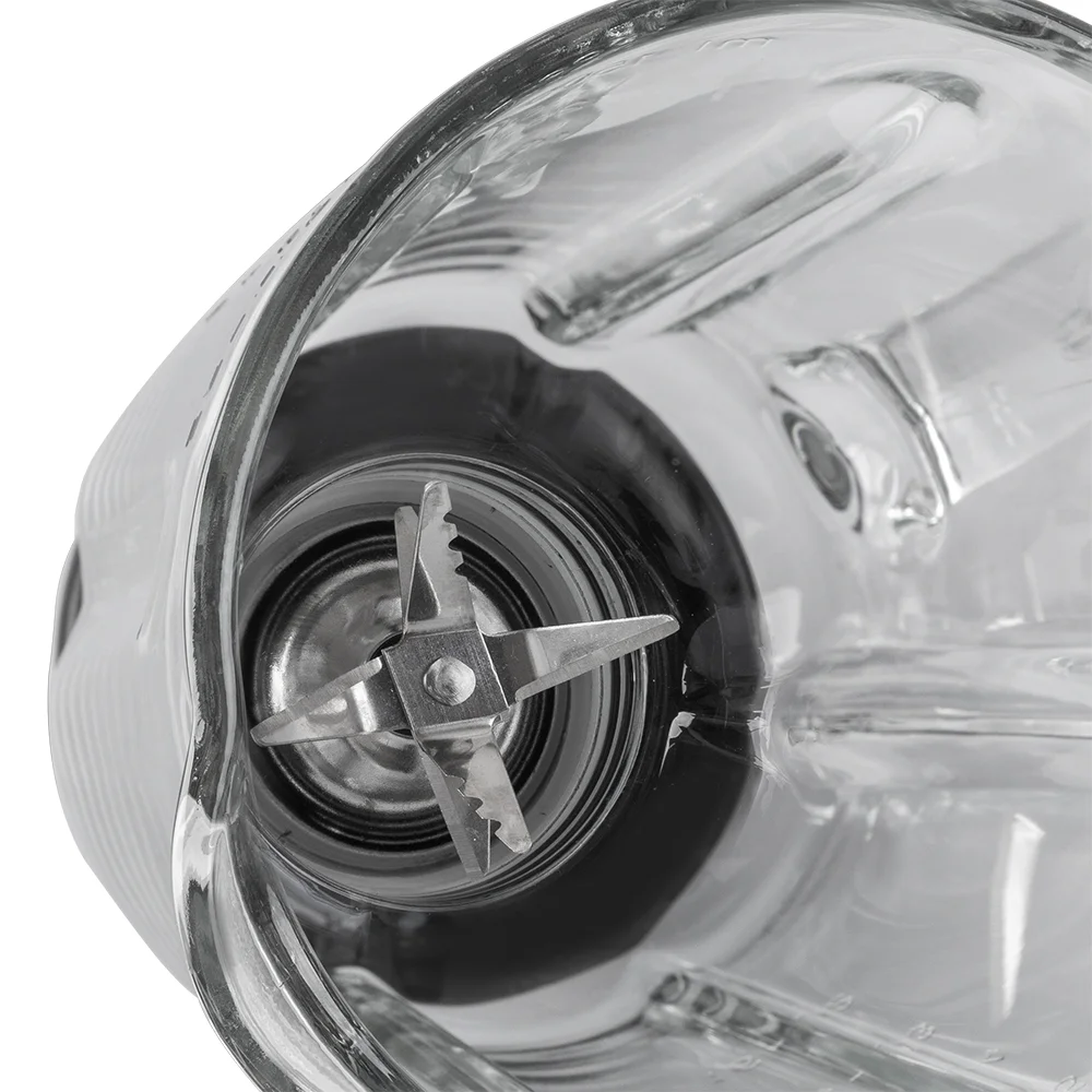 Эргономичный дизайн, Низкий уровень шума и вибрации, Идеален для колки льда, приготовления смузи, супов пюре и не только, Нож с шестью лезвиями, Материал ножей - нержавеющая сталь, Скорость вращения до 23 000 об/мин, Пять скоростей + импульсный режим, Плавная регулировка скорости, Защита от перегрева, Защита от случайного включения без чаши, В комплекте мини насадка-кофемолка, вместимостью до 100 грамм кофейных зерен, для перемалывания зёрен кофе, дробления орехов, измельчения специй, Нескользящие ножки |