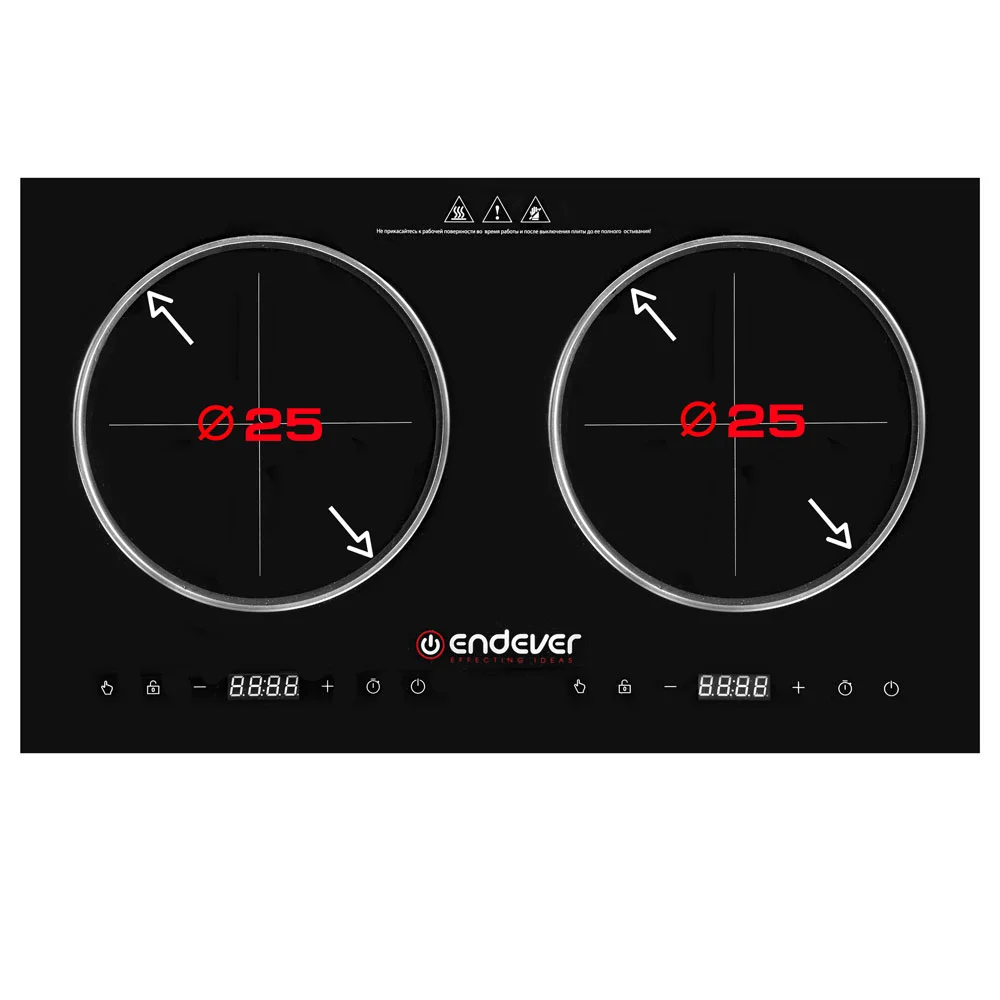 8 режимов регулировки мощности и температуры, Сенсорное управление, Рабочая поверхность повышенной прочности класса "Черный хрусталь", Таймер работы до 4 часов, Функция защиты от скачков напряжения в сети, Функция защиты от перегрева, Функция блокировки, Функция автоотключения, Рекомендуемый диаметр посуды до 26 см, Допустимая нагрузка на каждую рабочую поверхность 15 кг |