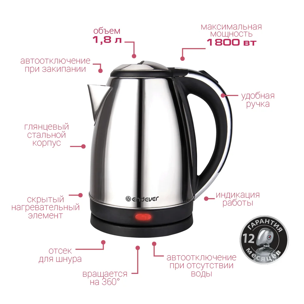 Чайник Endever Skyline KR-230S это стильная и современная модель, которая будет радовать Вас каждый день!
