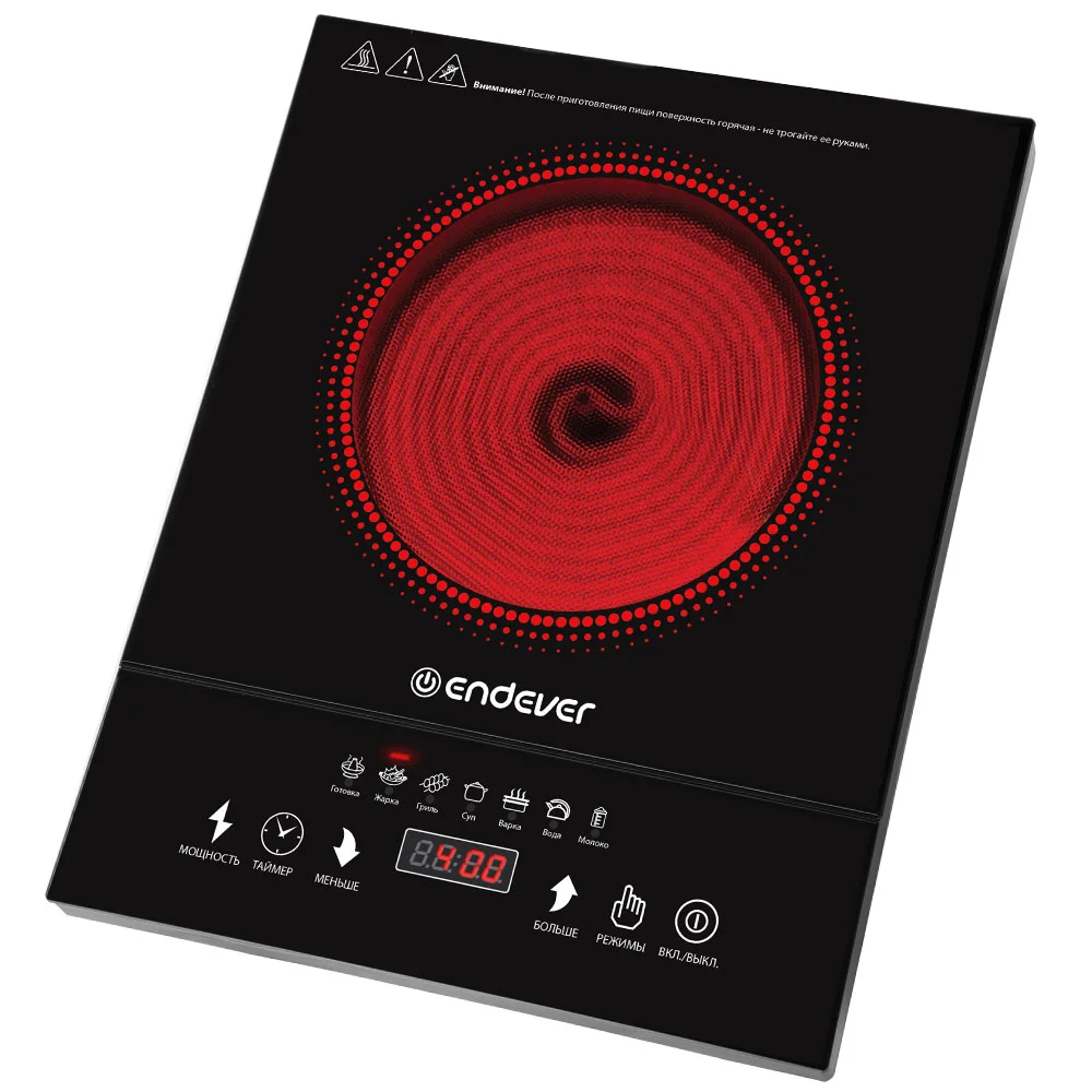 Электрическая плита ENDEVER Skyline DP-43 – аппарат лёгкий и компактный, это отличный помощник на маленьких кухнях, на дачах и других домах загородом. Благородный черный корпус с варочной поверхностью из прочного материала класса «Черный хрусталь» способна выдержать до 20 кг нагрузки.