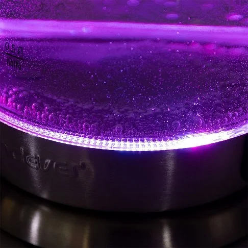 - Беспроводное соединение позволяет вращать чайник на подставке на 360°