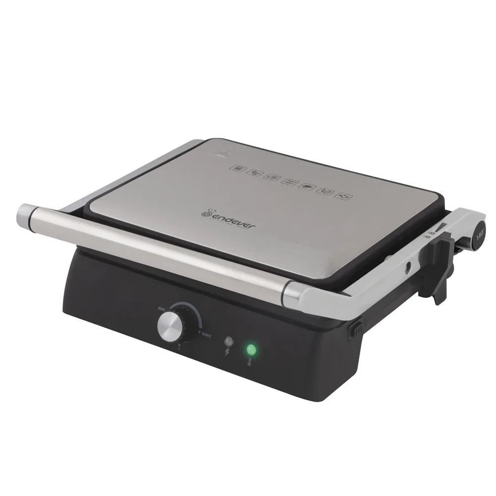 Несмотря на то, что конструкция электрического гриля контактная, как ,например, у бутербродниц и электрических вафельниц, бесспорно мощность и функционал пресс-гриля ENDEVER Grillmaster 225, а также размер его съемных панелей, вызывают уважение. Регулировки верхней части пресс-гриля имеют возможность откидывать ее на 180 градусов, это позволяет использовать эту технику, как барбекю, готовя одновременно на обеих панелях, а также фиксировать широкий спектр выбора высоты.