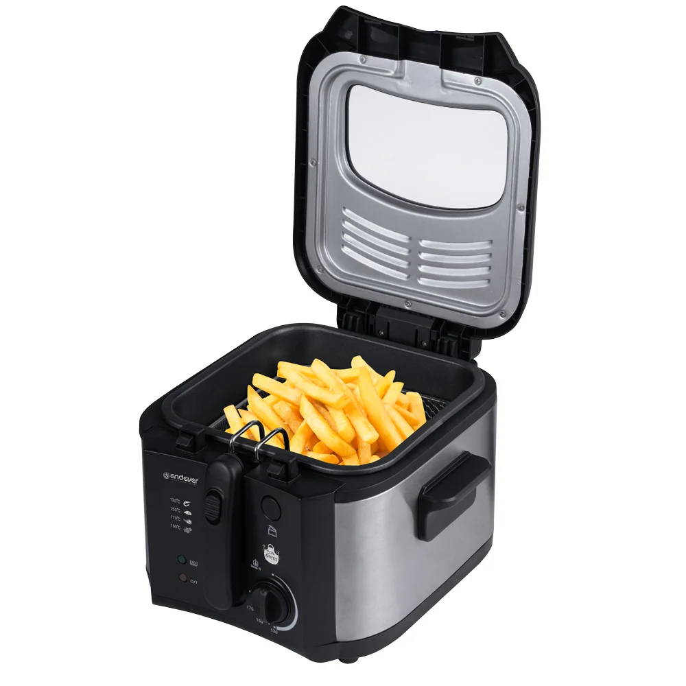 Электрическая фритюрница Endever FR-115 идеальна для приготовления любимых блюд таких как картофель фри, пончики, чипсы, наггетсы, хрустящие крылышки и многое другое.