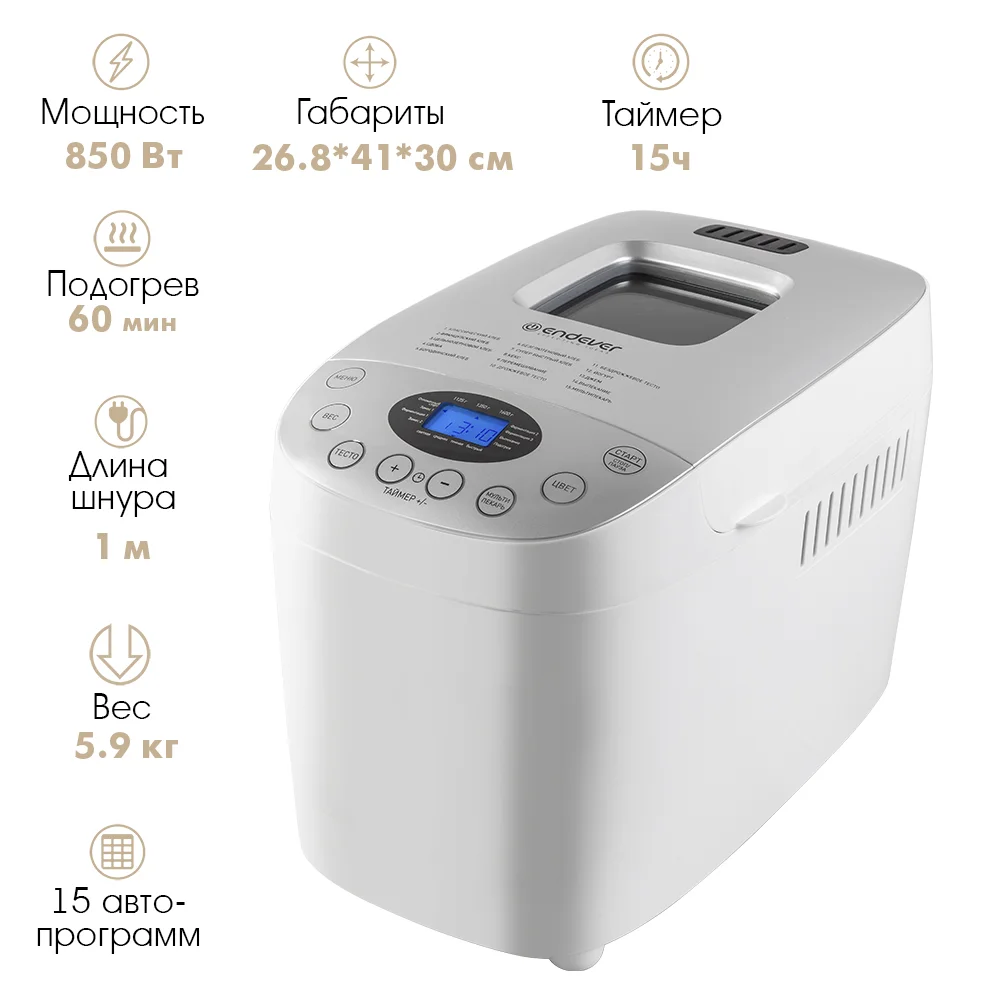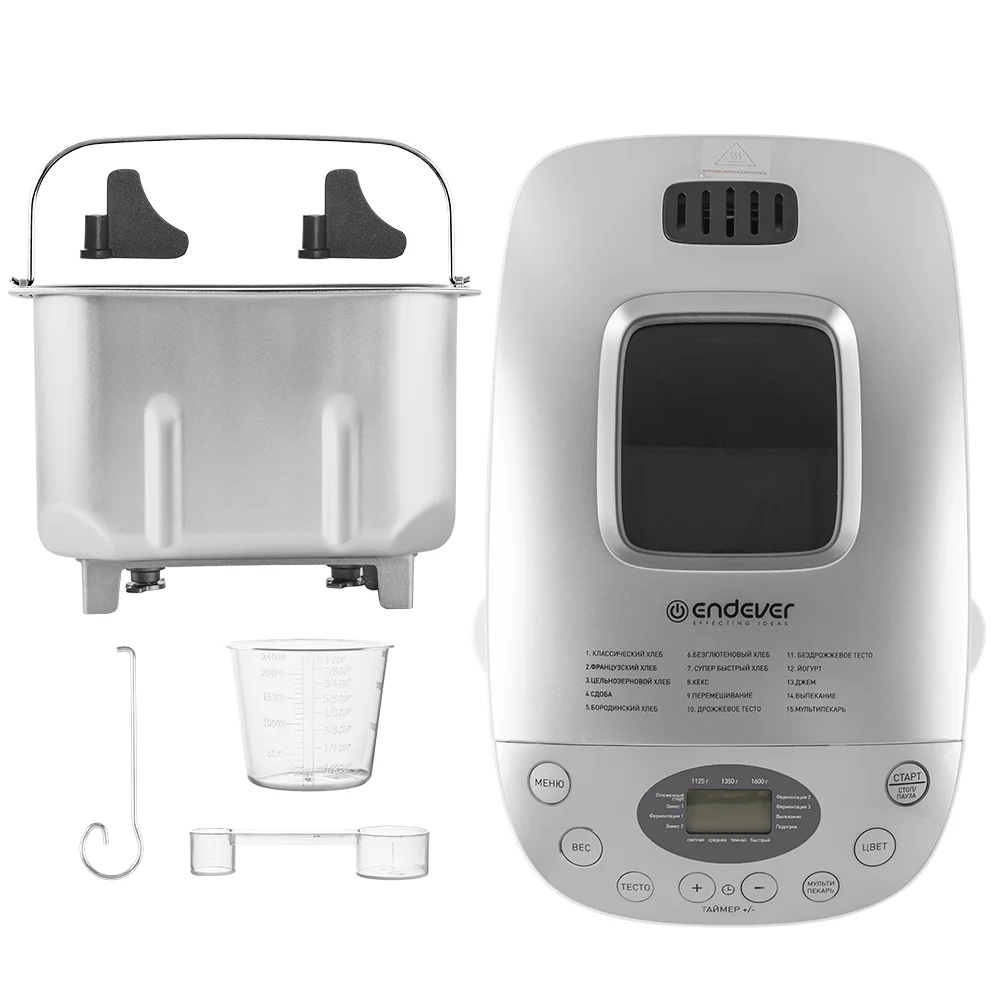 Одним из главных преимуществ Endever Skyline MB-65 является наличие 15 автоматических программ приготовления. Вы можете выбрать любую из них, и хлебопечка сама определит оптимальное время и температуру для выпекания. Также имеется программа “МУЛЬТИПЕКАРЬ” для создания собственных рецептов.